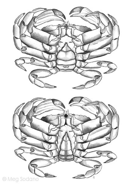 With ink line and wash on watercolor paper, I have shown the ventral and dorsal sides of six species common along the shores of southern New England.