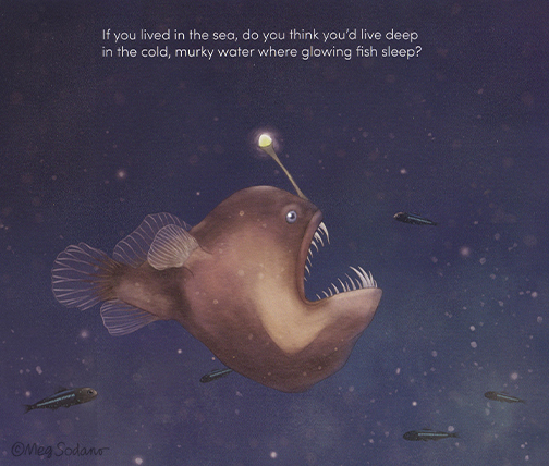 #1 Anglerfish attracting Lanternfish with her glowing lure.