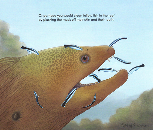 #3 Bluestreak Cleaner Wrasses cleaning a Moray Eel’s face and teeth.