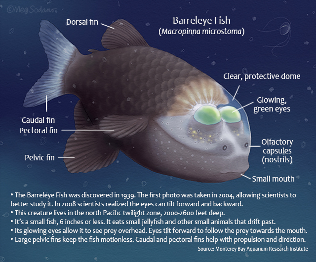 I had never heard of a Barreleye Fish when I received the manuscript for If You Lived in the Sea, Who Would You Be? Now I know a lot about this creature, so I’m sharing it with you.