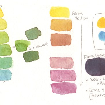 For every one of my books, I start with creating a color palette. I use watercolors because they are so easy to blend and experiment with. You can see that I have a lot of colors on hand, but I tend to pick 3 main colors, and some extras that will be useful in small … More Color Palette